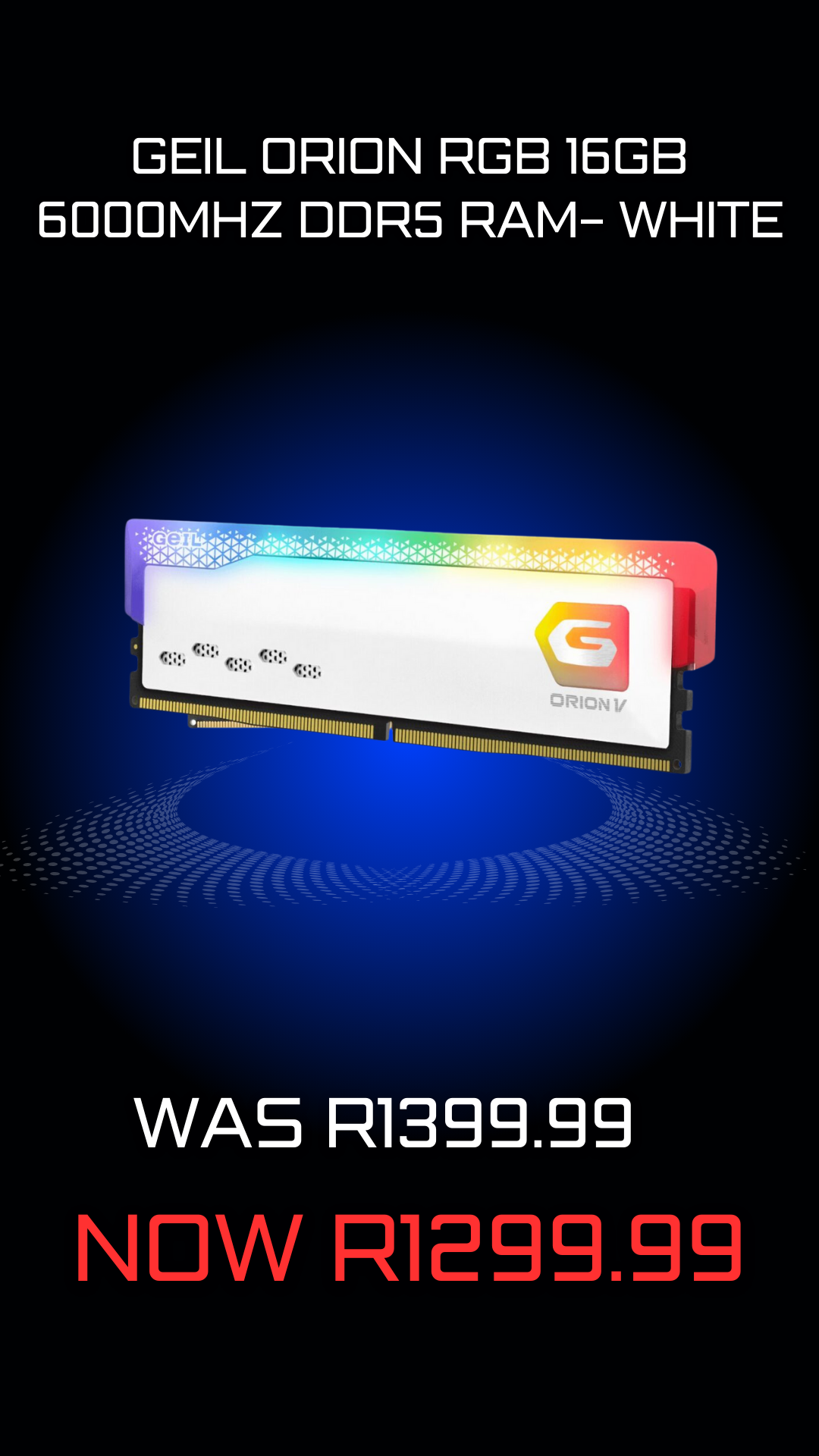 - GeIL Orion RGB 16GB 6000MHz DDR5 RAM- White x1