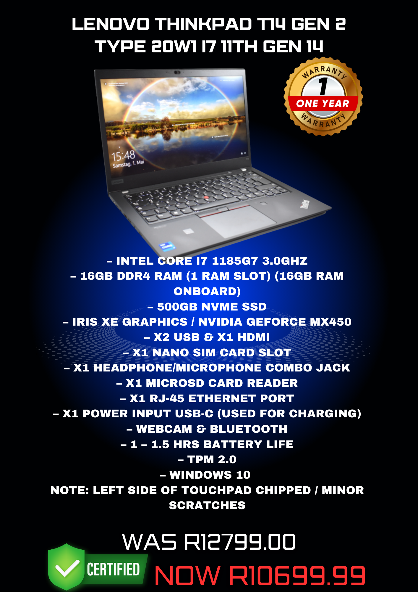 Lenovo ThinkPad T14 Gen 2 Type 20W1 i7 11th Gen 14